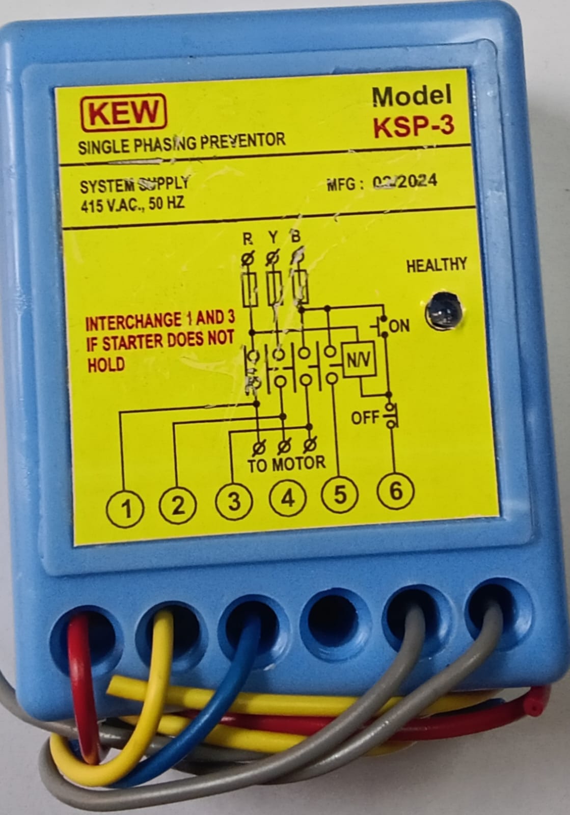 1 Sysyem supply voltage : 415 VAC 2 Output contacts. : 1 NO 3 Unbalance Trip Setting. : 40V+6VAC 4 Trip Time Delay : 2-5SECS 5 Mounting Dimensions Overall (LXWXD)MM. : 62x60x100 Mounting (LXW)MM : 91×48 6 Mounting. : 35MM RAIL MONTING & PANEL MOUNTING